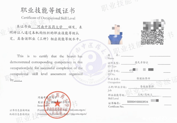 九、技能等级证书颁发:参加培训班的学员可在我校申请职业技能等级认定,考试合格后颁发国家技能等级证书(技能认定费可享受团体标准优惠),仅有目录内五个工种技能等级证书,目前没有针灸技能证书。